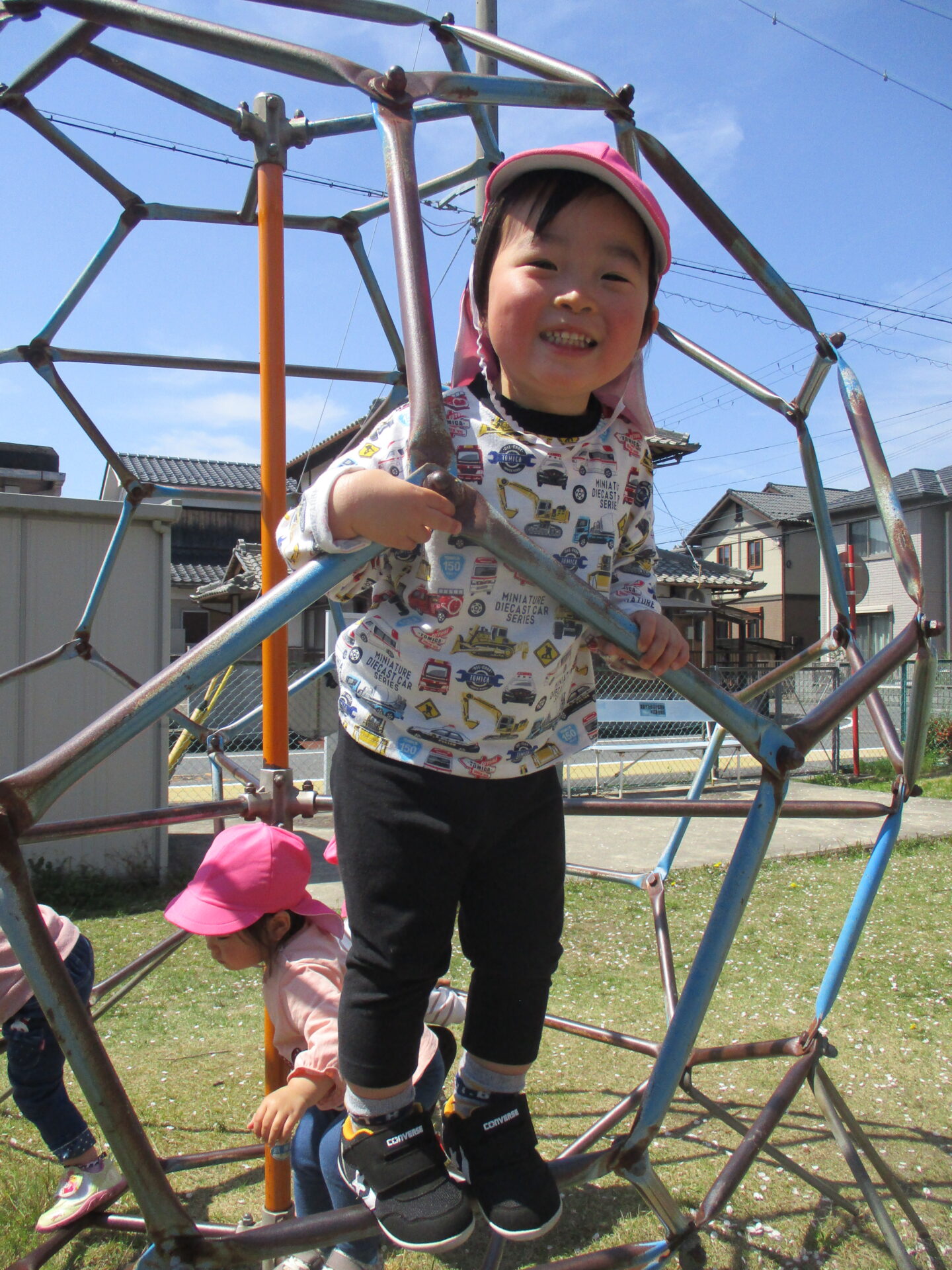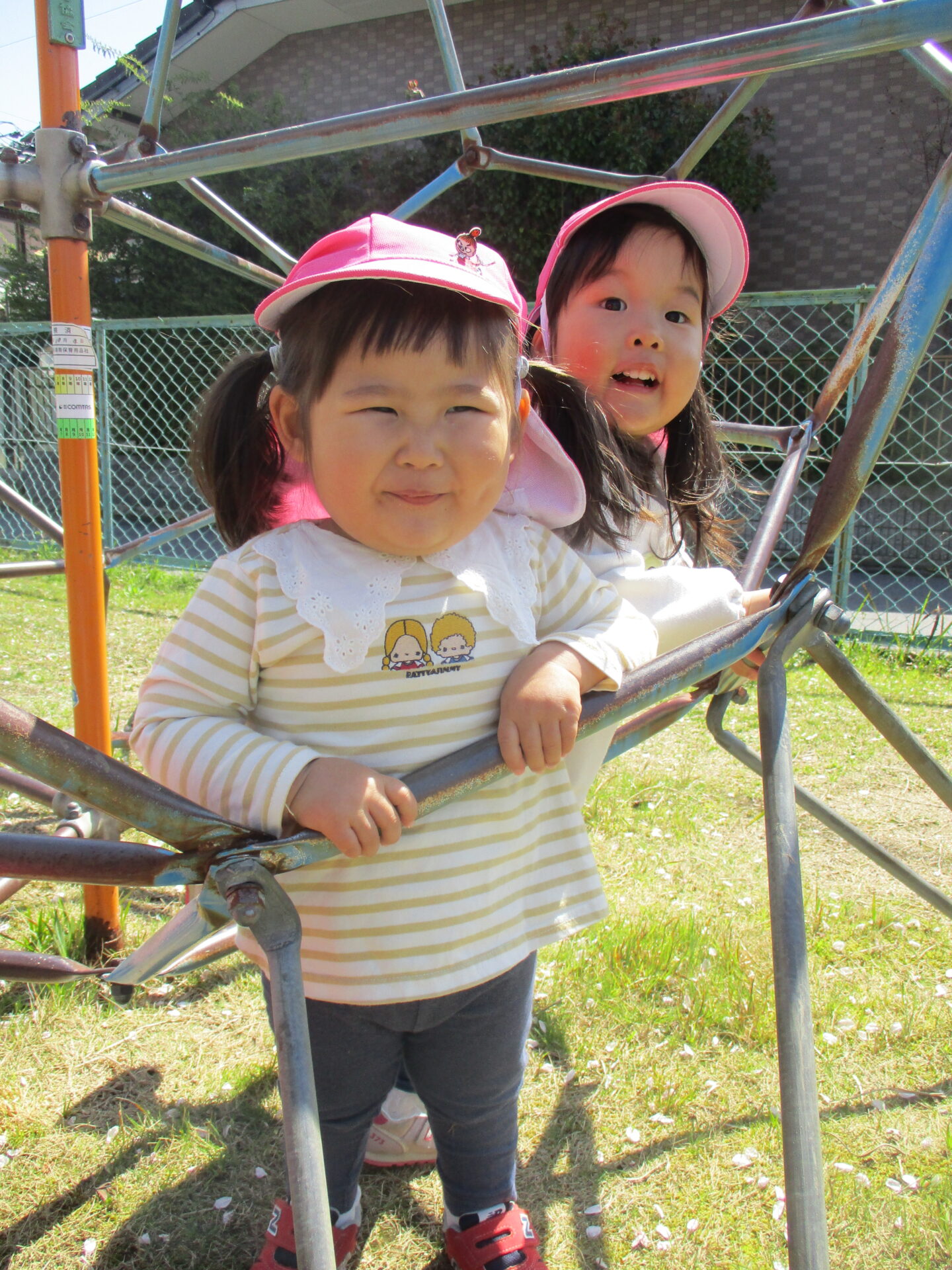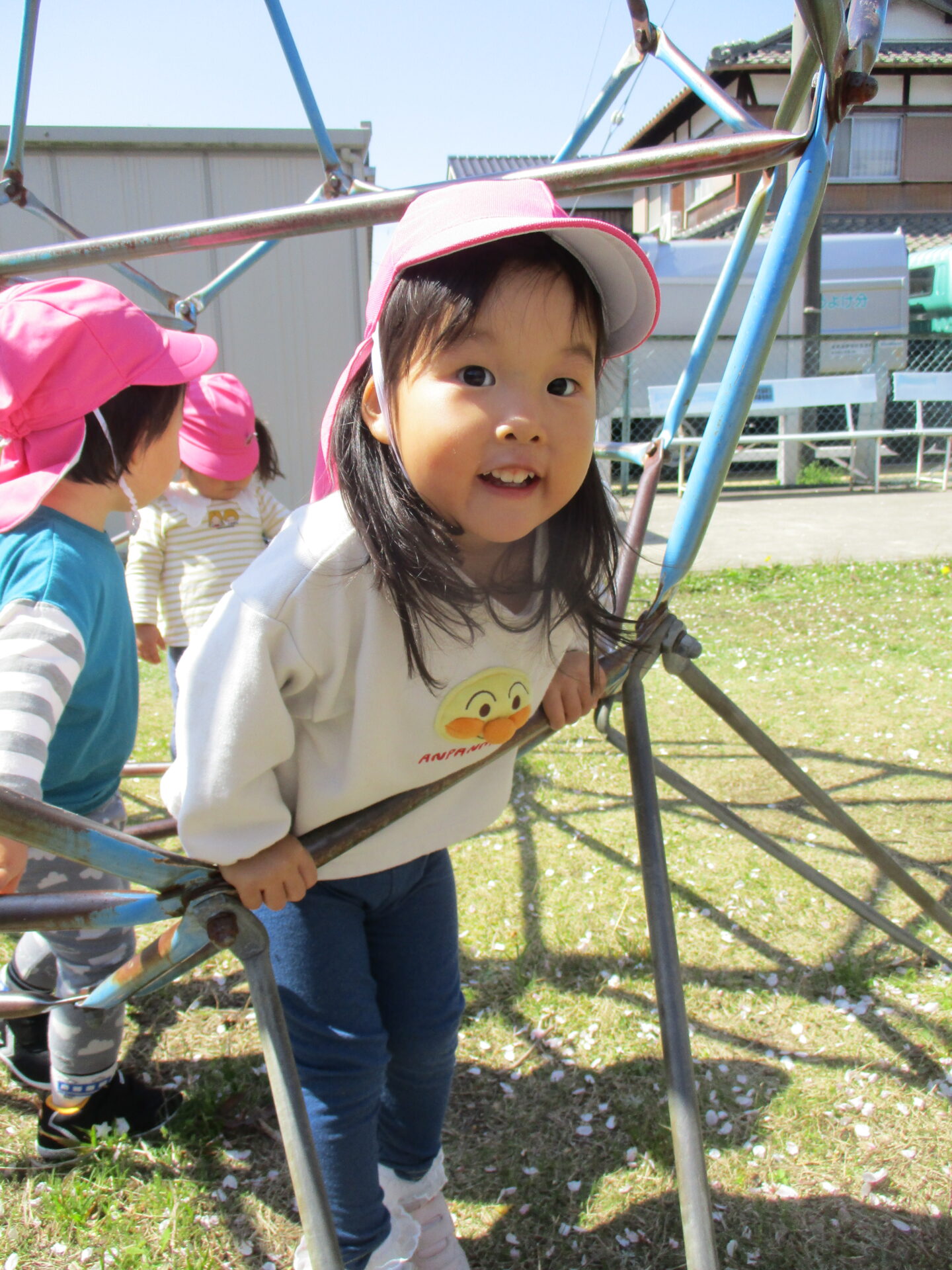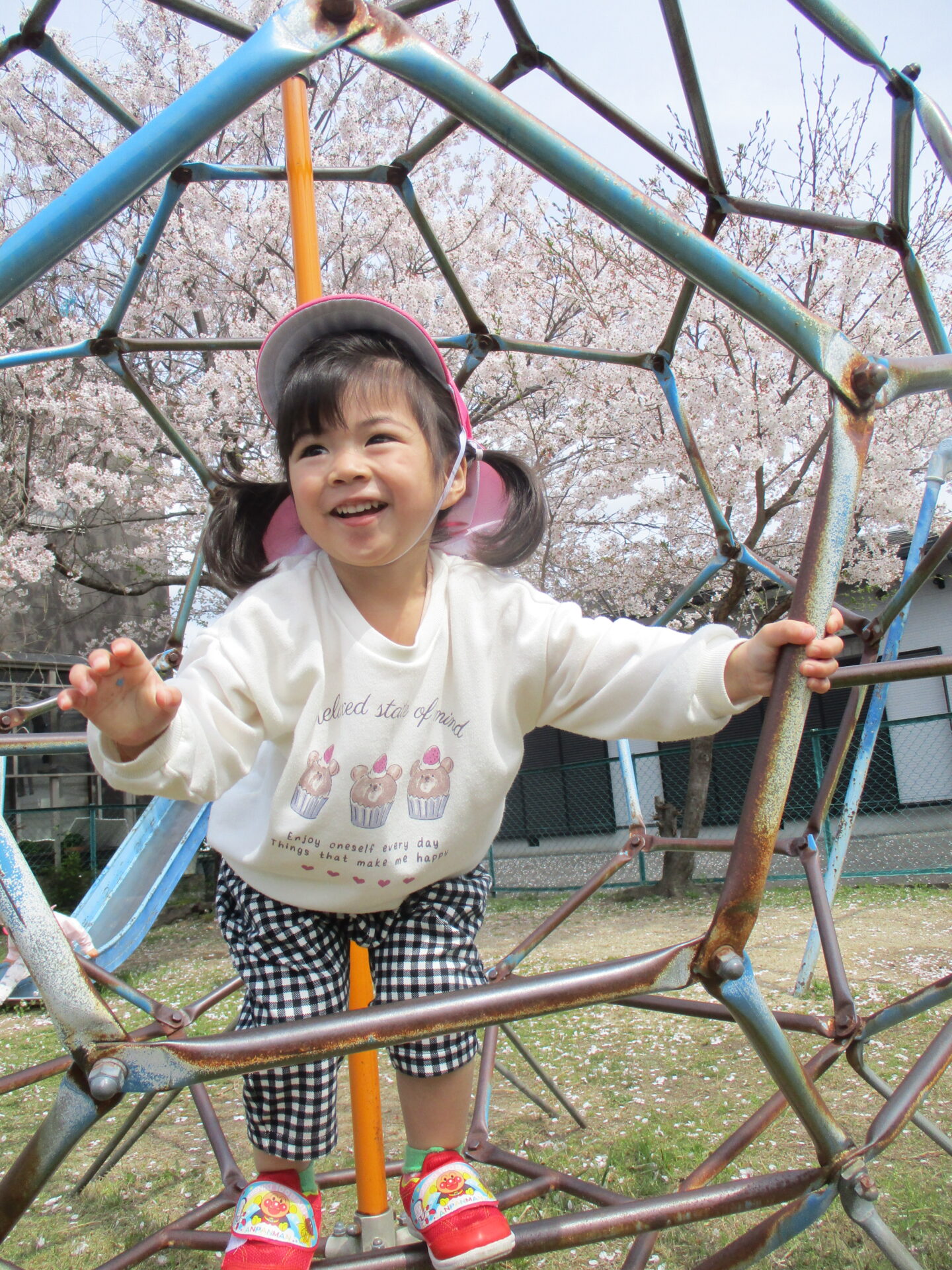 ジャンルジムの中に入って「やっほー!!」と、ご機嫌です🥰