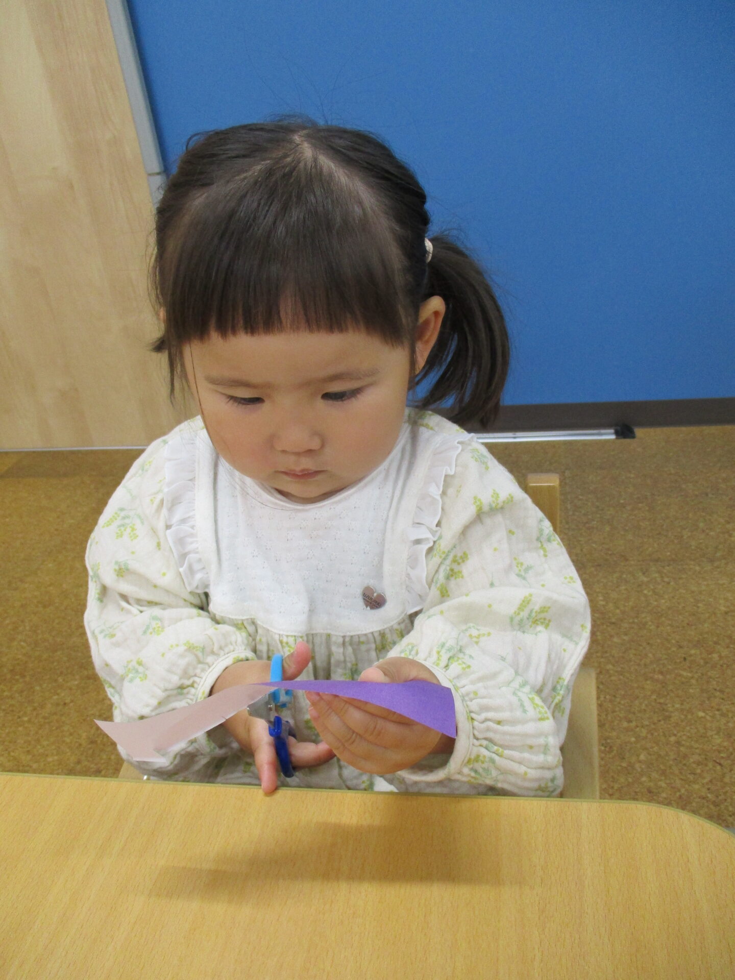 初めてのはさみに挑戦です(^▽^)ドキドキ💓