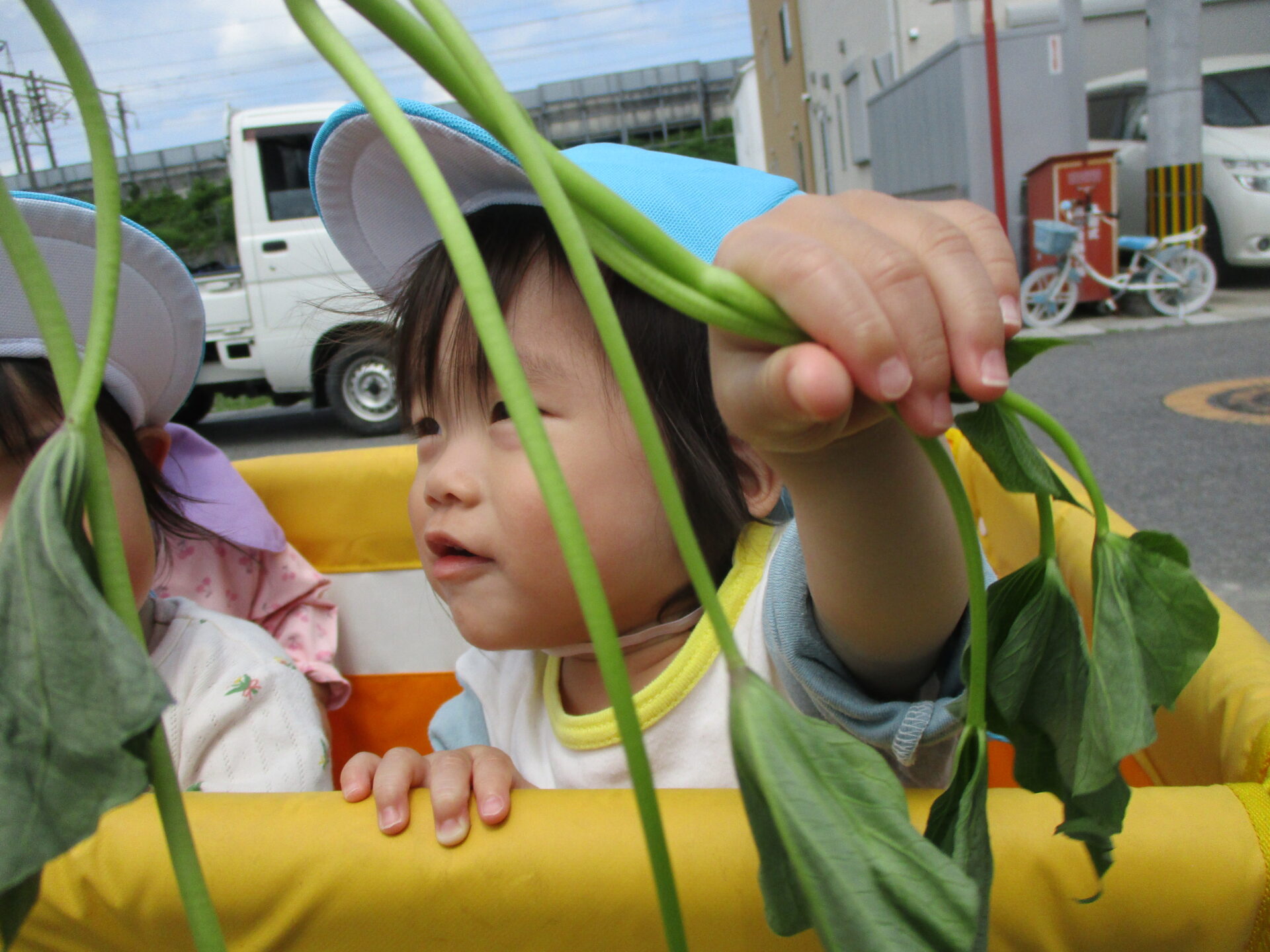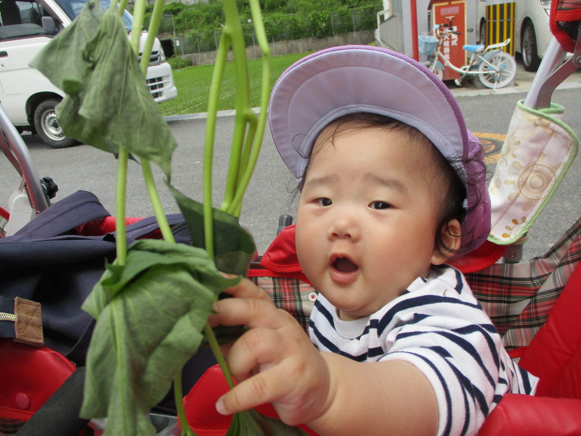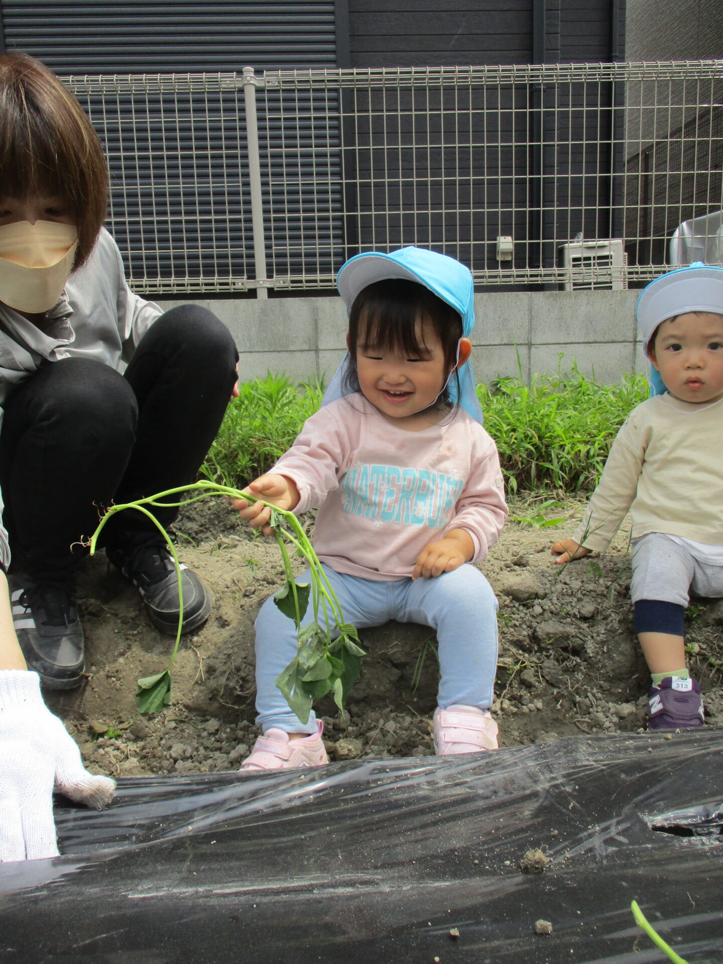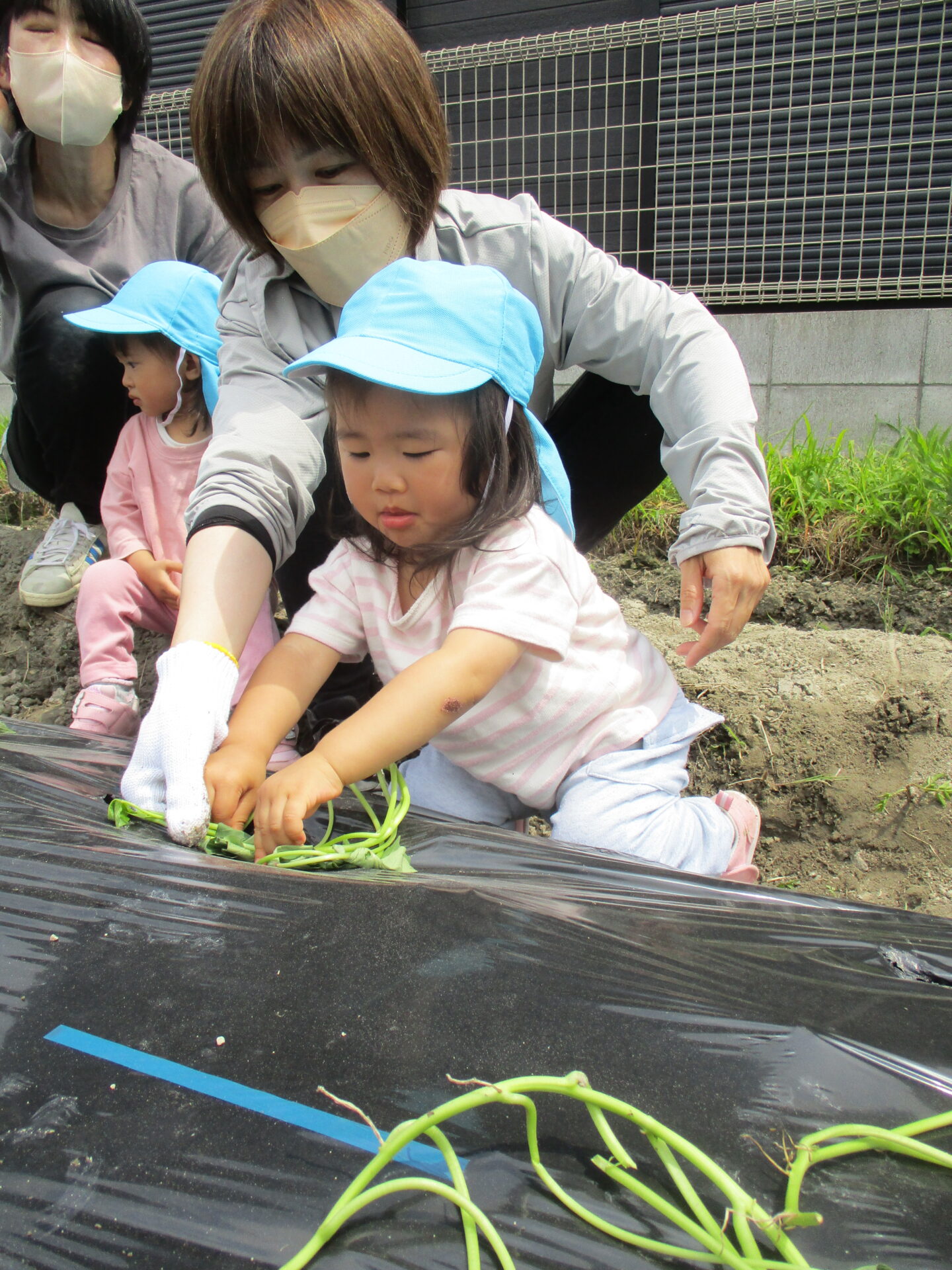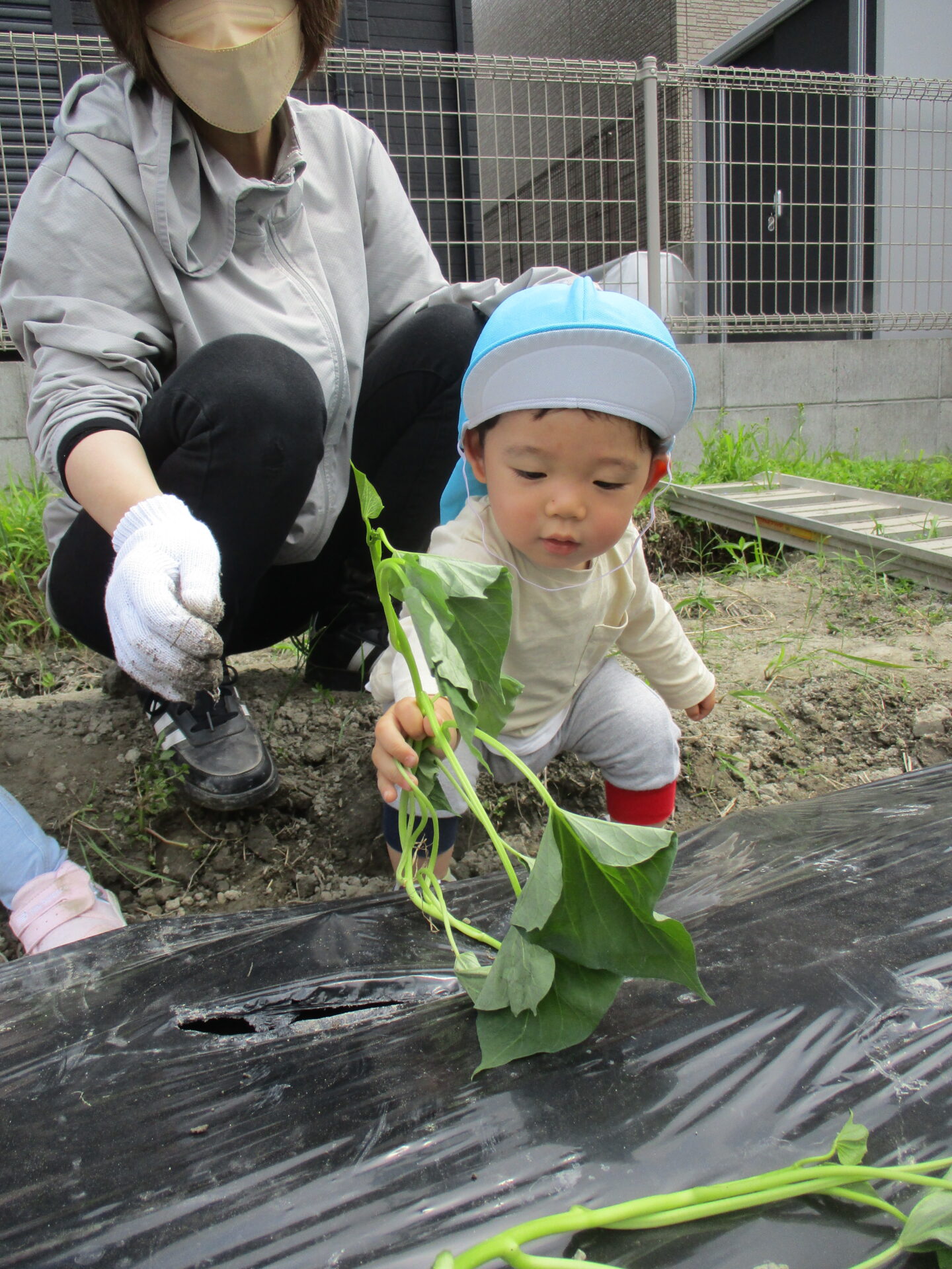芋の苗を触って興味津々でした(⌒∇⌒)💕