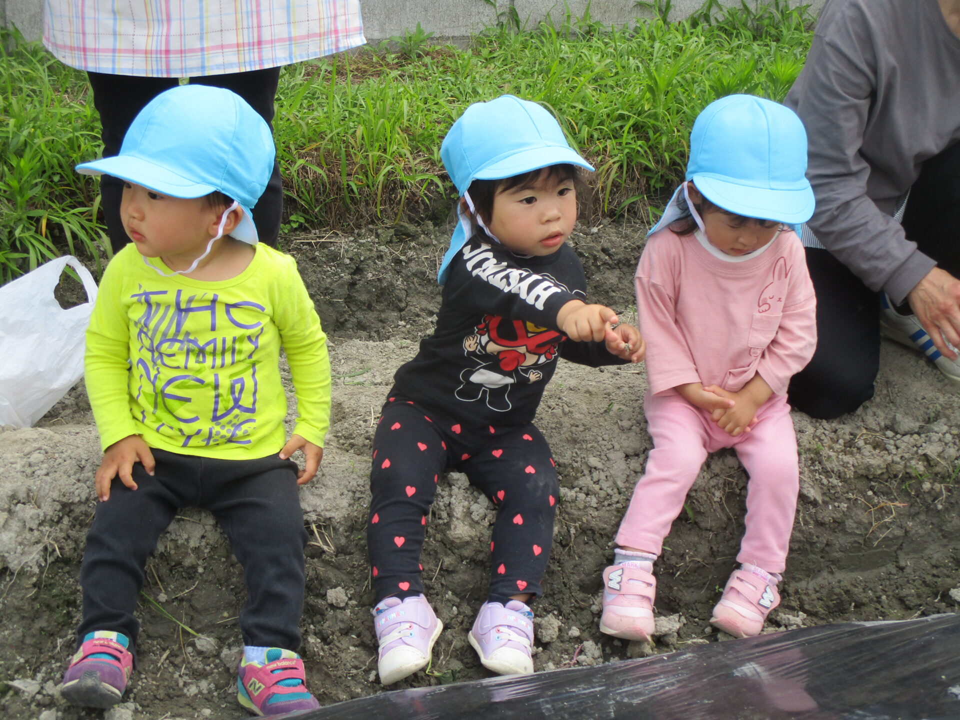 凸凹の畝だったので、月齢の低いお友だちは、少し離れたところで参加しました!!