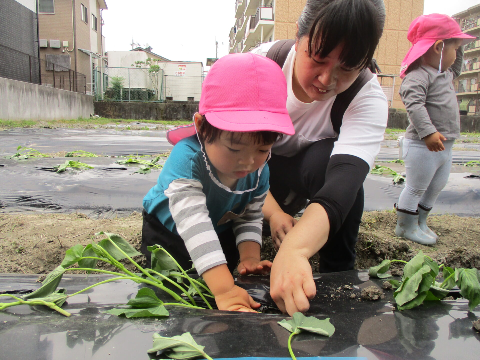 そして、2歳児あめチームのお友だちから順番に苗付けに挑戦✨