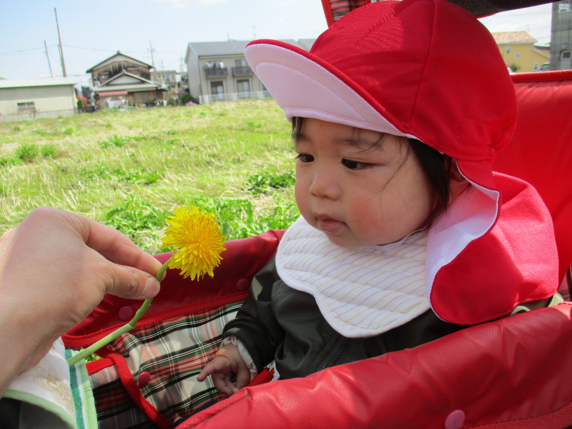 草花に興味を持ったり、気持ち良い風に吹かれてご機嫌です😊