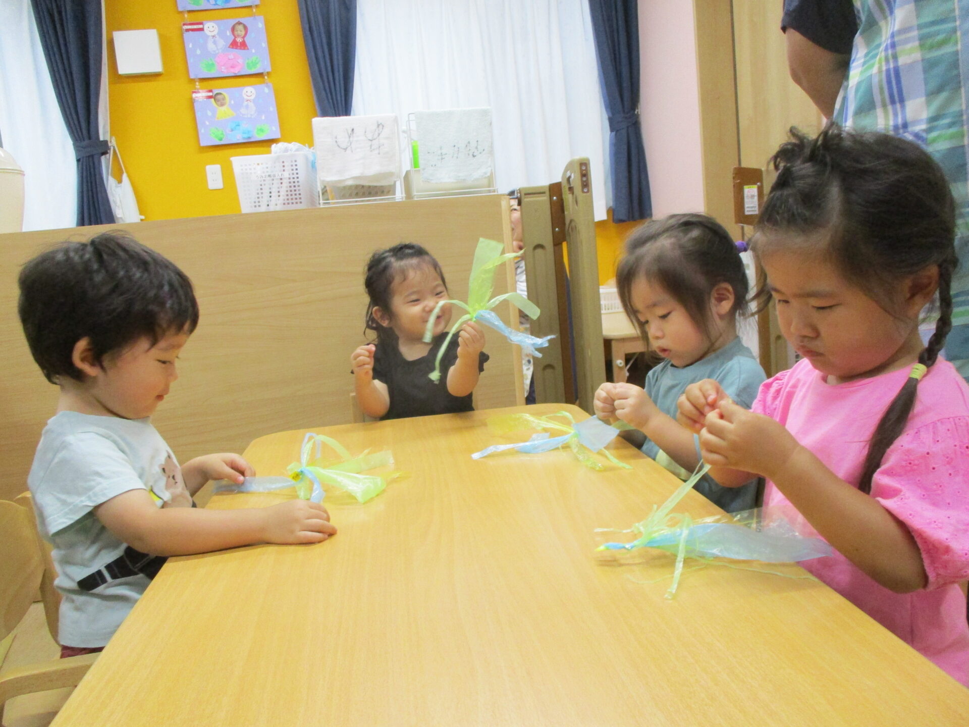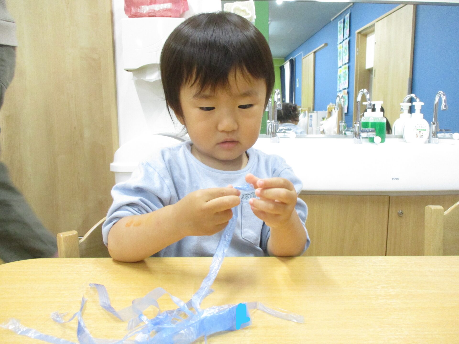 裂ける感覚がおもしろくて、夢中になっていました(⌒∇⌒)💓指を上手に使えるようになってきたあめチームのみんな✨これからも指先を使う活動を楽しんでいきたいです!!