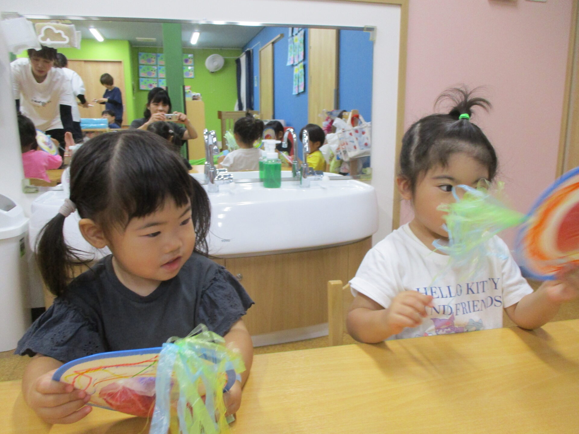 雨の降る日、2歳児あめチームの子ども達はこんなに可愛いものをつくりました(⌒∇⌒)💓