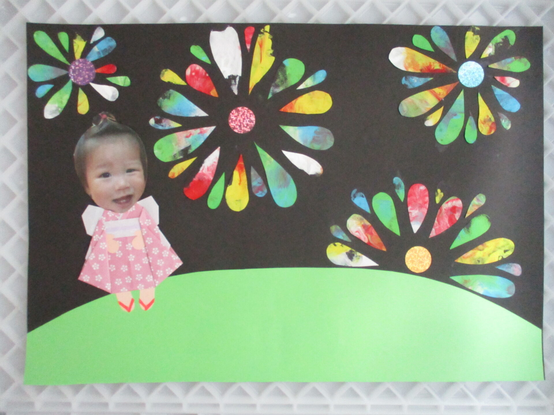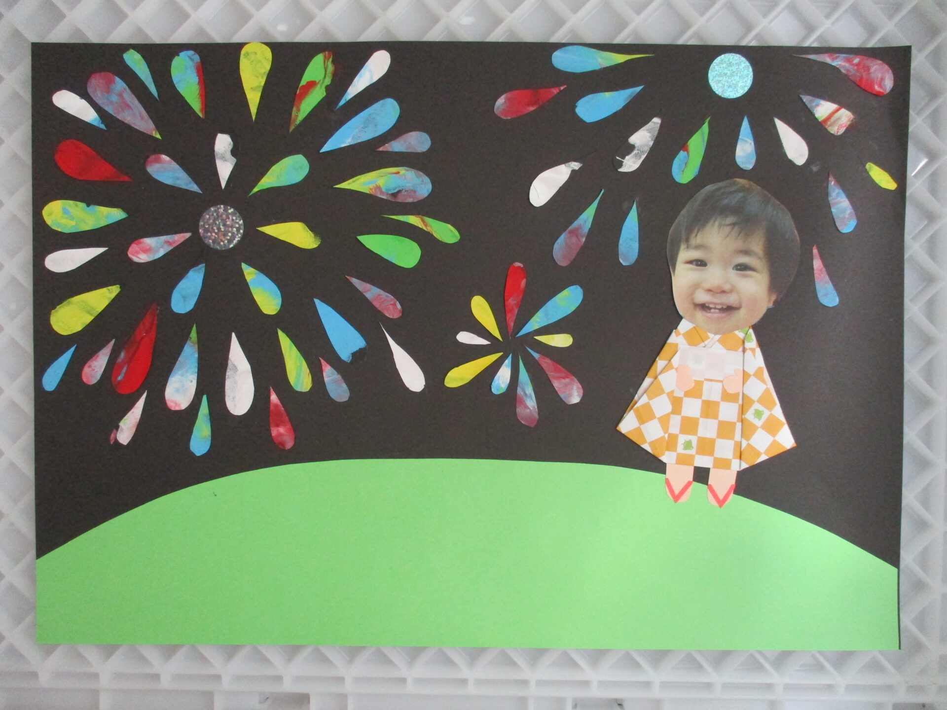 今回の絵の具遊びは、花火に大変身して壁面制作として保育室に飾ります🎆