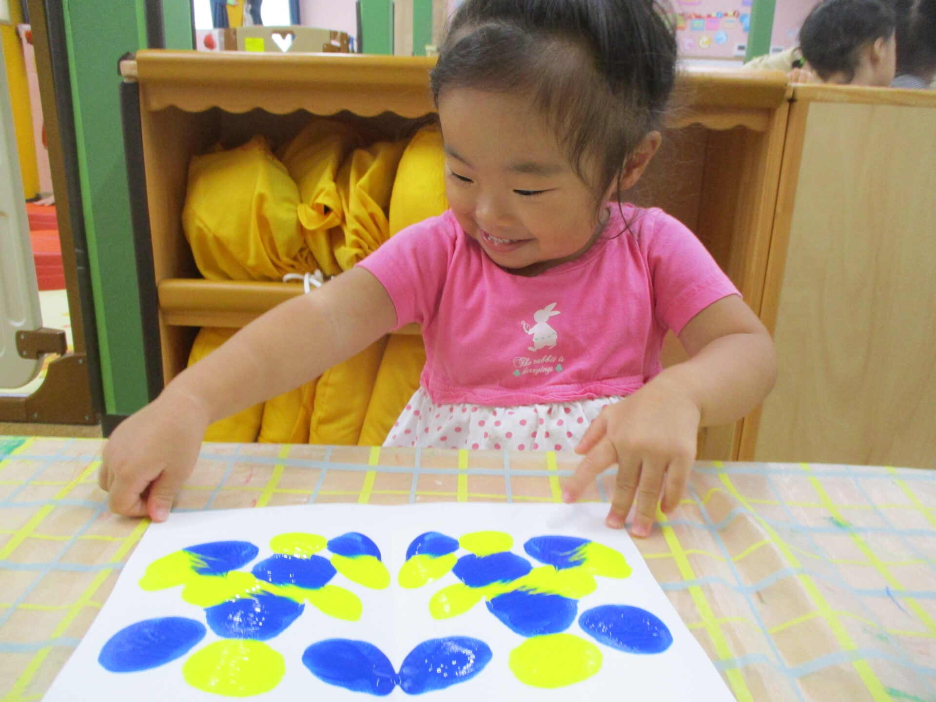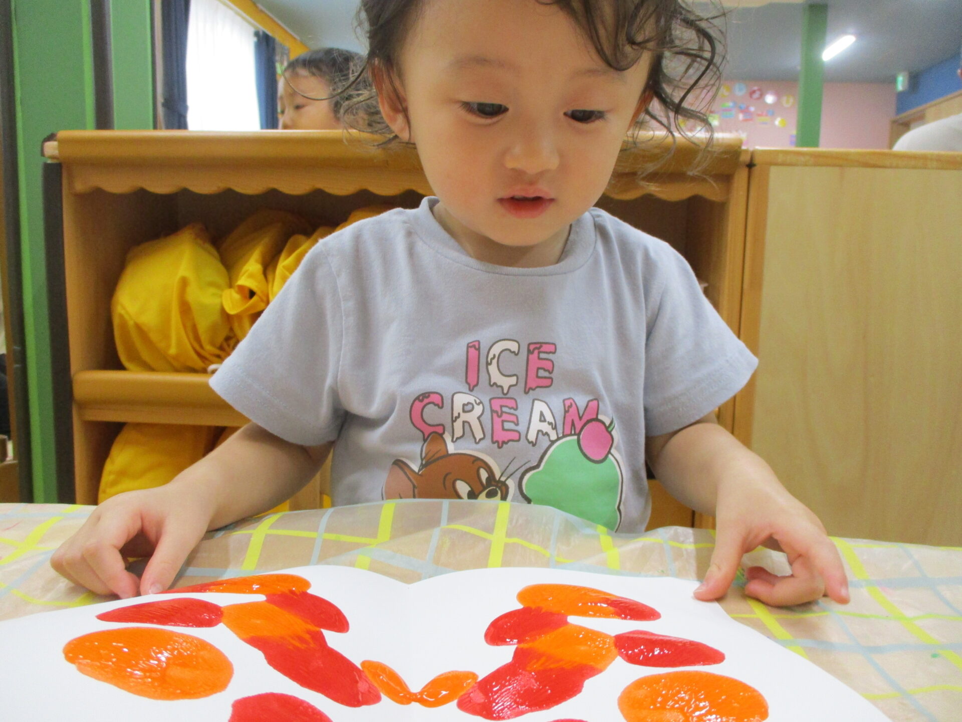 ”色”に興味を持ち始めているだいちチームのみんな✨室内では、デカルコマニーにも挑戦しました!!
