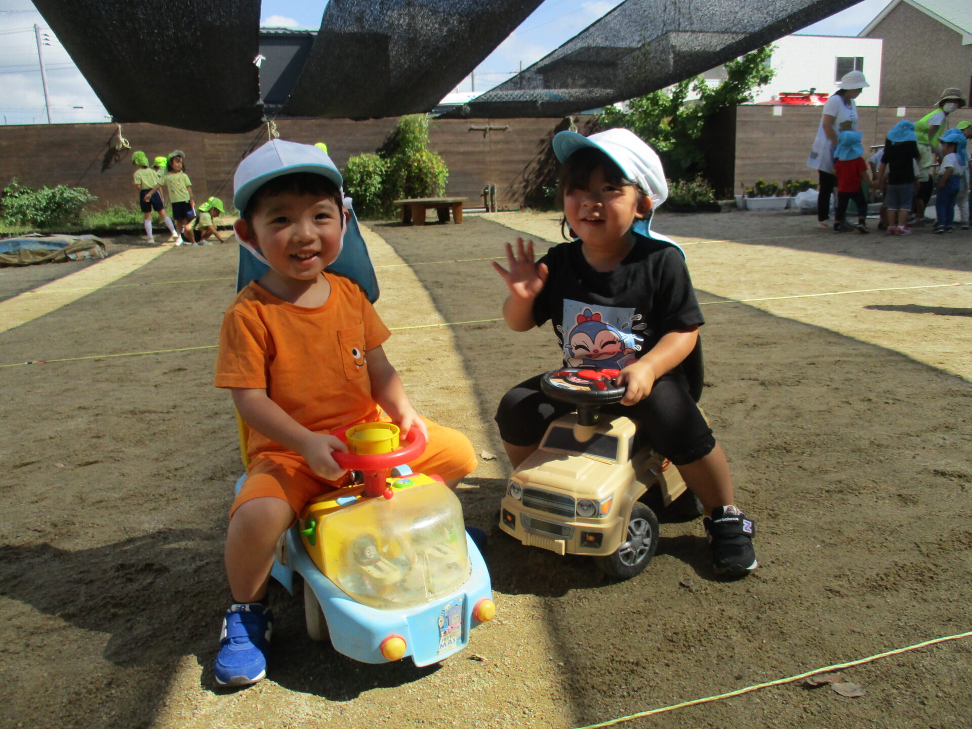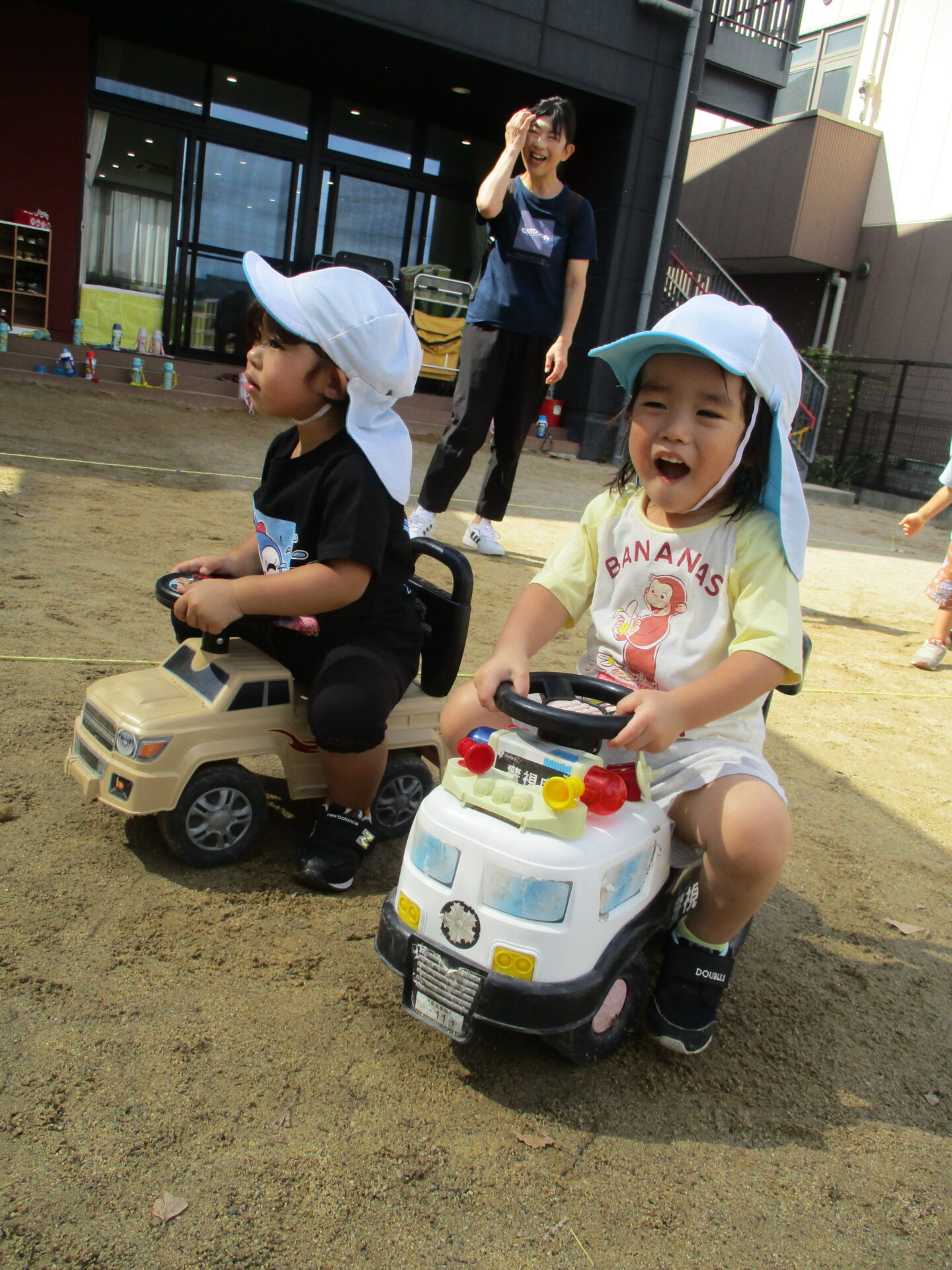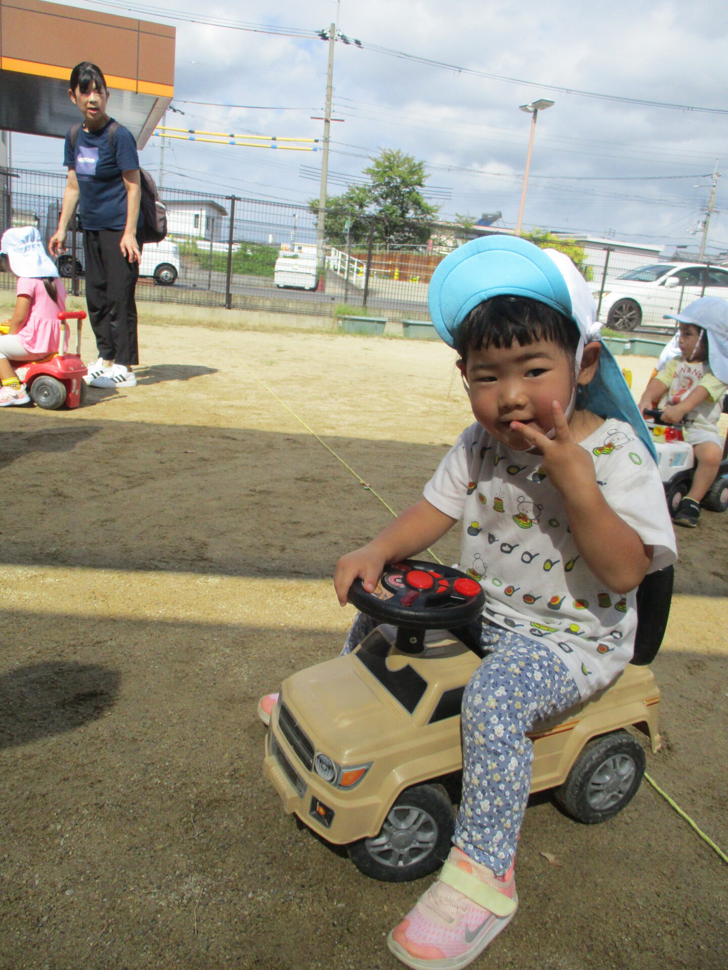 ゴーゴー!!広い園庭中車を乗り回し、ご機嫌でした🚗💕