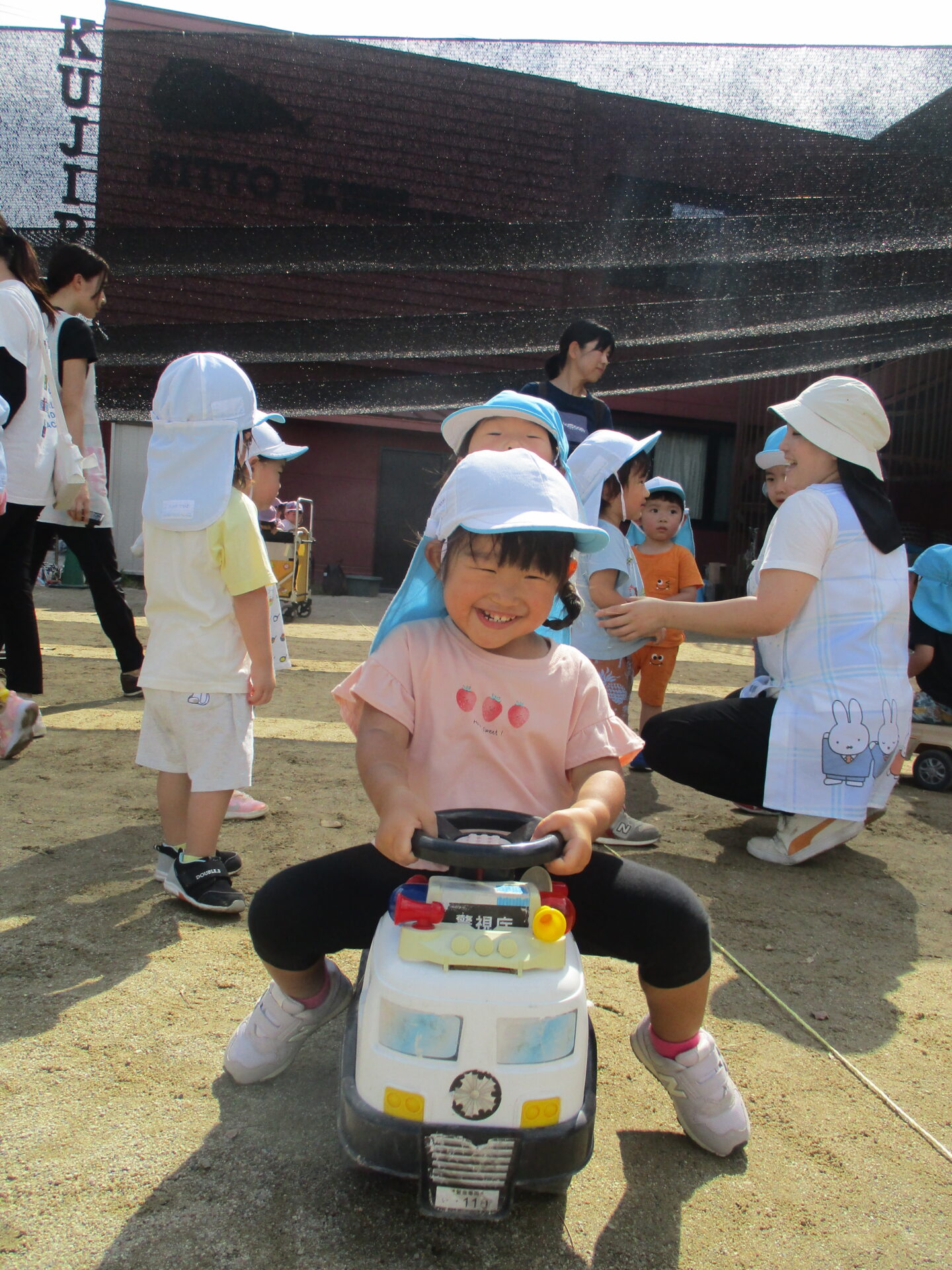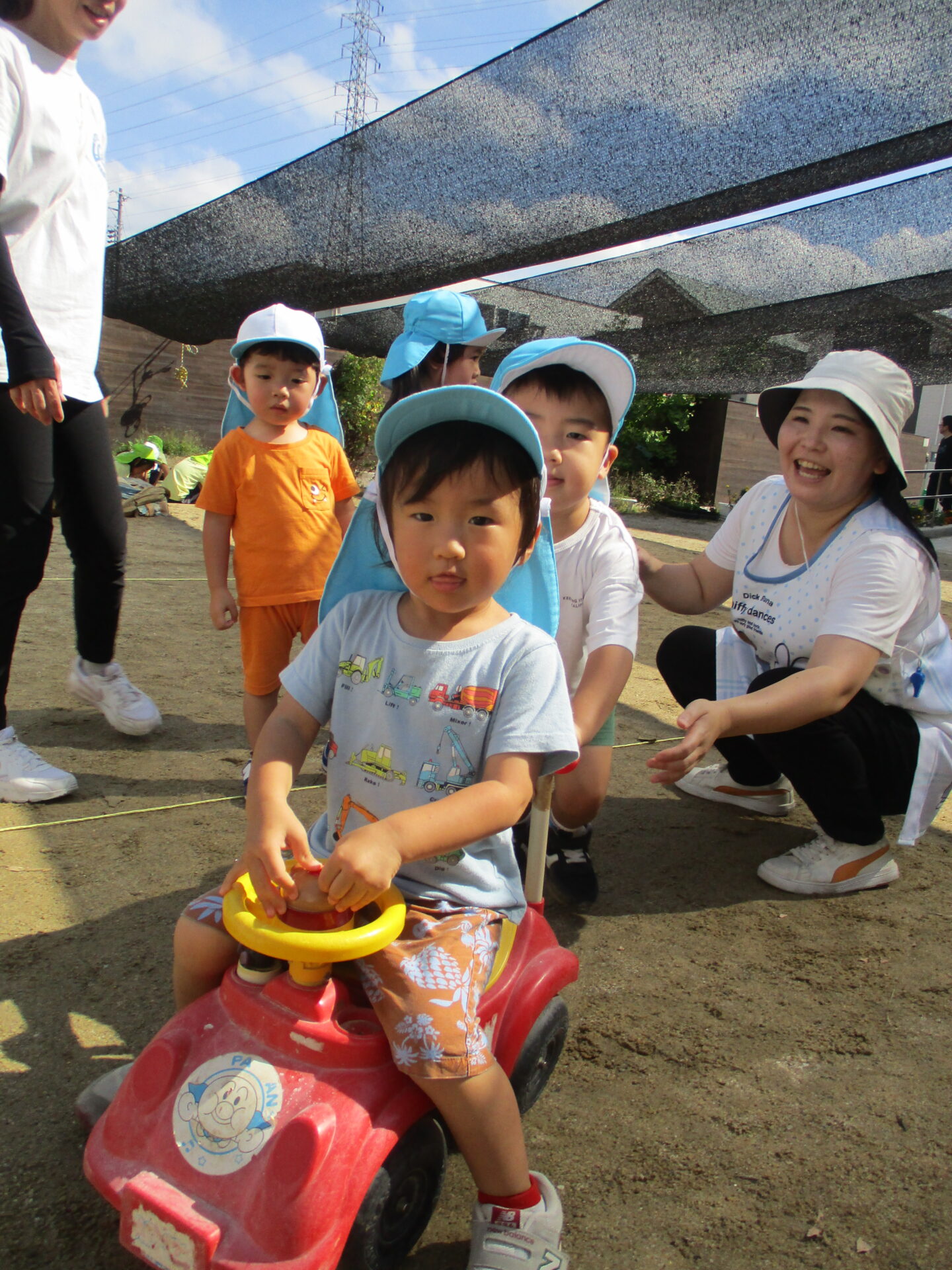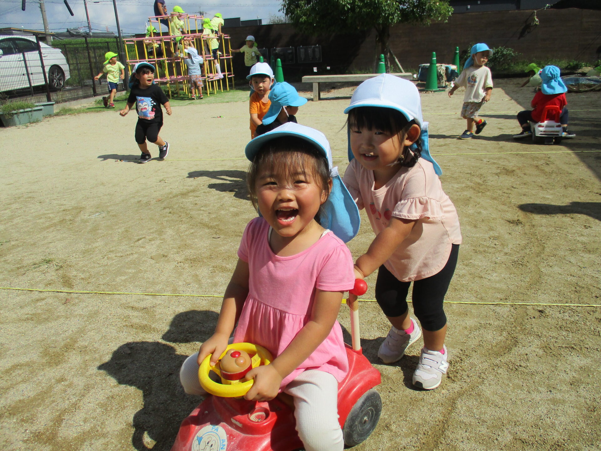 ゴーゴー!!広い園庭中車を乗り回し、ご機嫌でした🚗💕